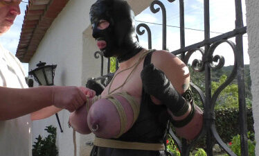 First Jewelz has her arms tied to a post over her head so The Pope can manhandle her fantastic tits and play with her pussy. He warms her up by flogging her stomach. He ties her left ankle with rope and raises it up, spreading her legs. The Pope fingers her pussy and then applies the Hitachi and coaxes out a several orgasms. Then he ties up her right leg, and with both legs off the ground, The Pope really goes to work vibrating Jewelz’s pussy, ripping out even more orgasms. Next, Jewelz is in a full rope suspension, giving The Pope full access to all of her welcoming holes. The Pope brings out the dick-on-a-stick and shoves it in Jewelz’s mouth to lube it up right before he stuffs it in her pussy. The Hitachi comes back and The Pope smashes it against her sensitive clit and gets multiple orgasms out of her.