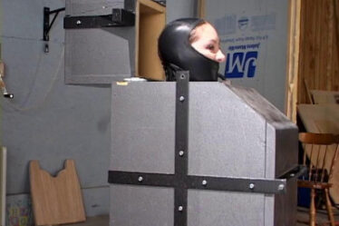 Sometimes it is never enough when it comes to putting the ladies into bondage which is why they end up fully covered and fully helpless. Jet was dressed in a tea towel apron and had her arms bounds down to her sides and was gagged with a very large knotted linen cleave gag. This gag was then changed to filling her mouth up with linen and tying it in place as well as the addition of more linen around her head and neck. More tea towels were used to further fully cover her head and she was then left to her own desires. Siren was laid onto the end and had this blanket wrapped and roped around her and was then scarf gagged and her feet tied up inside the blanket as well. The top of the blanket was then pulled up and tied around her chest and neck leaving just her wide eyes uncovered as she struggled to no avail. Imogen was tied to a post standing up with bandages over the white muslin sleeve that she had been put into. Cleave gagged with a white scarf before the muslin sleeve was pulled up over her head and knotted on top of her head. A second white cleave gag followed over the muslin followed by white tape going over her gag and eyes and around the post.
