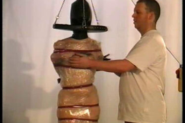 he premise here is that Summer and Stacey are both latex clad and about to be bound tightly. Stacey’s elbows and wrists are first and then Summer’s elbows and wrists are tightly bound. Stacey is then placed on a rolling stool and her ankles tied around it. She’s ballgagged first before David moves around and ballgags Summer as well. A body rope finishes off Stacey’s restraints before David takes another rope and hobbles off Summer’s high heeled ankles. David then leashes Stacey’s body rope off to Summer’s elbows forcing Summer to tow Stacey while bound and gagged. Pass after pass make it obvious that pulling her in a forward direction is easy enough, but not quite as easy to steer. Eventually the rope works it’s way around to the back of Stacey and she’s pulled backwards for a bit to finish off her bondage scenario.